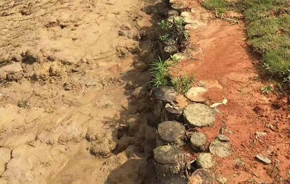 查看詳情改造魚塘,堤壩用木樁加固為了穩(wěn)定壩的基礎(chǔ),兩邊用松木樁固定;相對來說木樁成本較低。